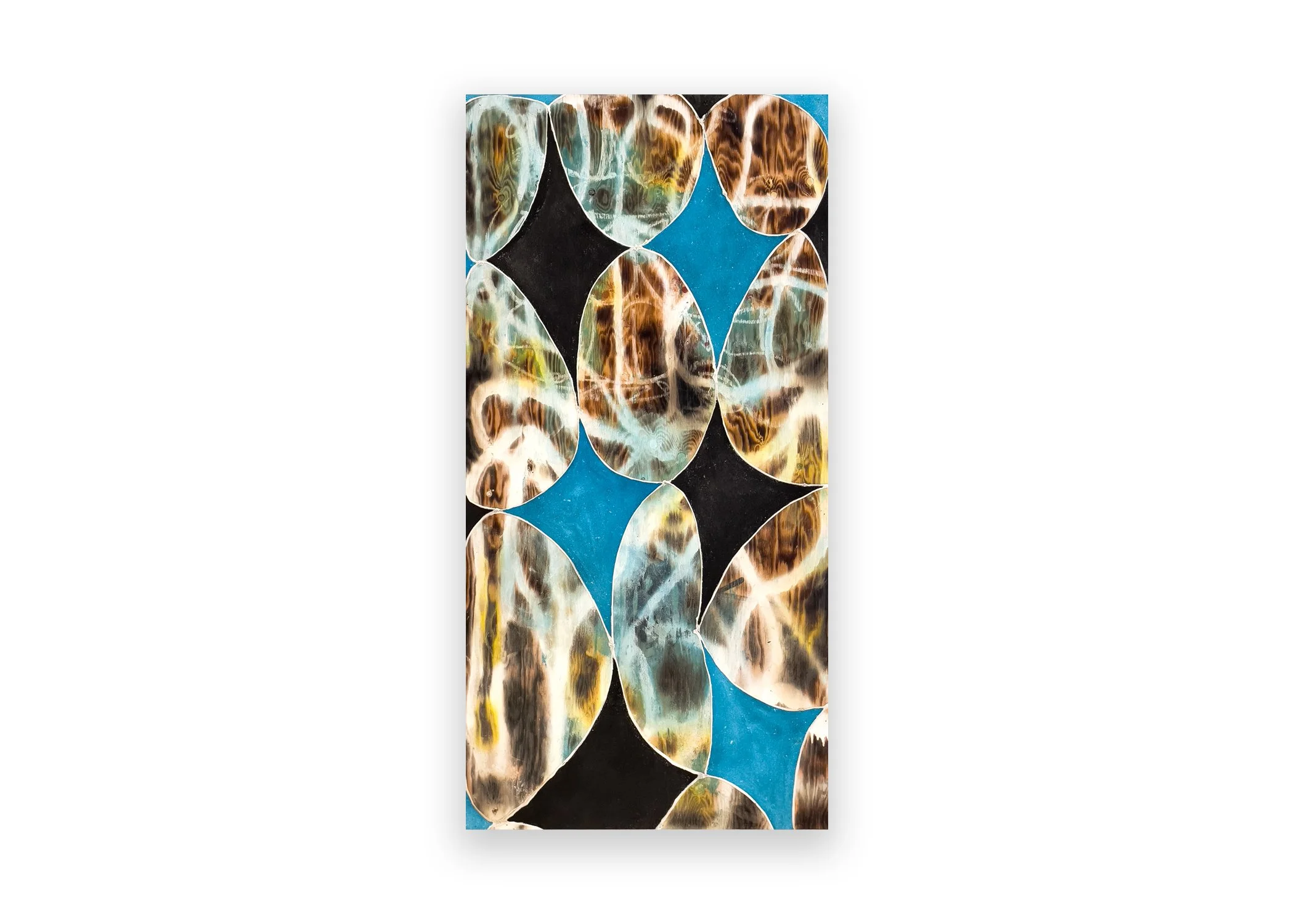 Tiffany’s Blues, 24x18, Acrylic, sand, enamel and silicone on canvas, 2024